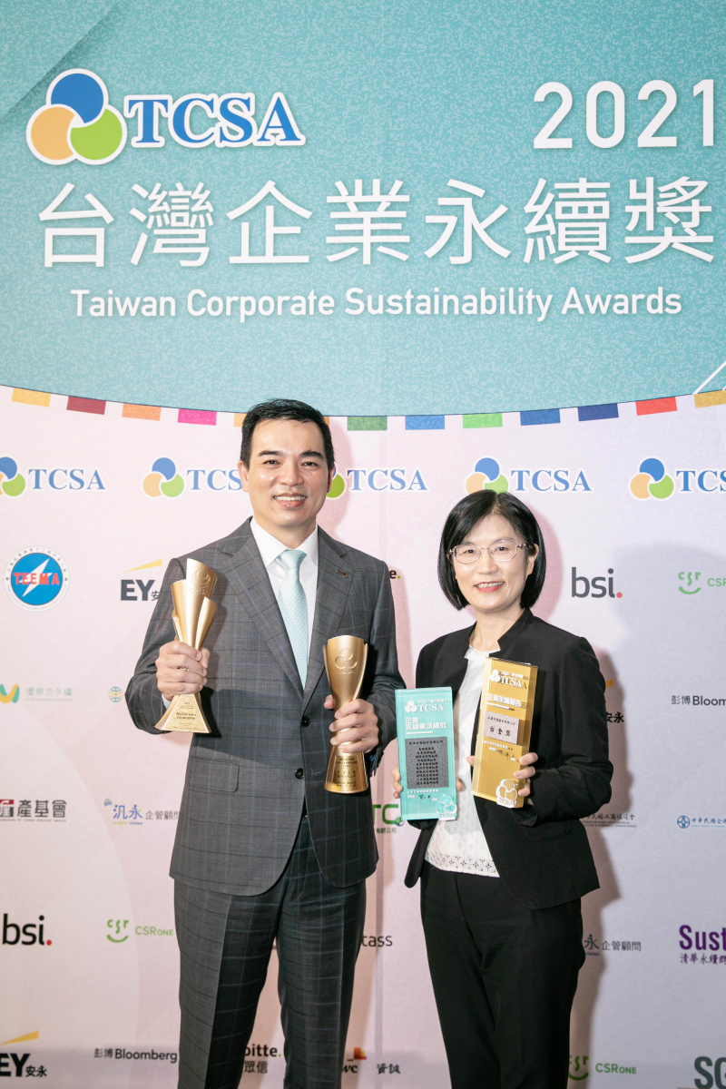 達(dá)在臺(tái)灣永續(xù)獎(jiǎng)所評(píng)比環(huán)境、社會(huì)、治理等各面向的永續(xù)績效均獲高度肯定 (左:LEYU官網(wǎng)光電總經(jīng)理暨營運(yùn)長柯富仁,右:LEYU官網(wǎng)光電永續(xù)長古秀華)