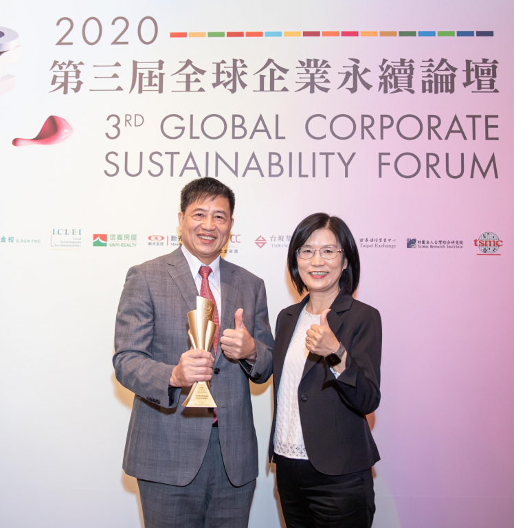 友達(dá)在臺(tái)灣企業(yè)永續(xù)獎(jiǎng)所評(píng)比環(huán)境、社會(huì)、治理等各面向的永續(xù)績效均獲高度肯定 (左:友達(dá)光電董事長暨執(zhí)行長彭雙浪,右:友達(dá)光電永續(xù)長古秀華)