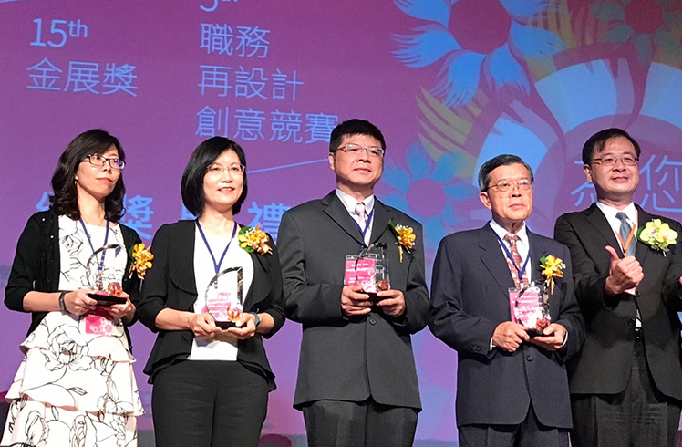 友達榮獲第 15 屆金展獎,由人力資源總部副總經理古秀華 (左二) 代表受獎。